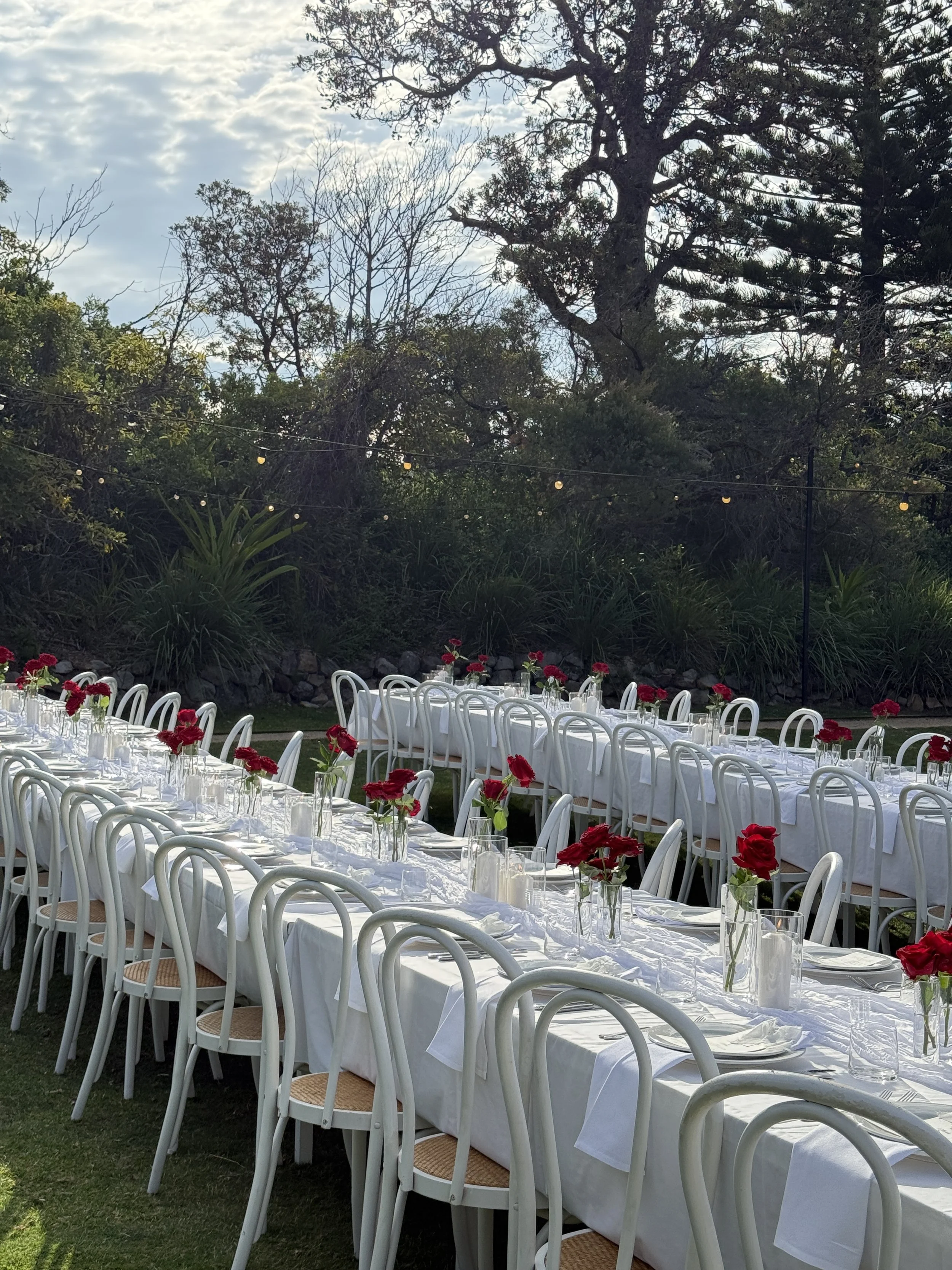 - Reception styling setup, such as menus, place cards, signs, favours, candles, candleholders, napkins & table runners